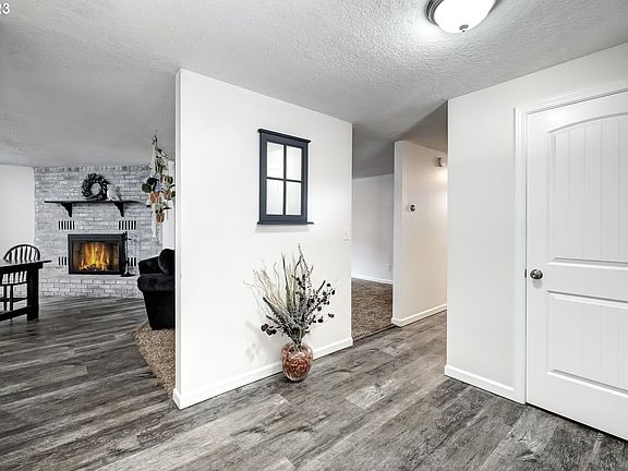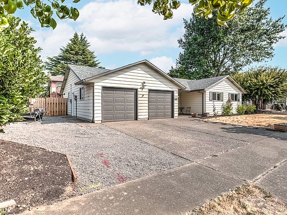 Single-level home situated on a spacious corner lot. Ample parking between the level driveway, large two-car garage, and additional gravel parking suitable for a small RV, boat, utility trailer, work truck or van. Fully fenced backyard includes a covered patio, fire pit, and large Tough Shed for storage. The large yard has endless potential for landscaping, gardening, entertaining, or playing. The roof and electrical panel were replaced in the past couple of years. Inside the home, you will find a beautifully updated kitchen with quartz counters, updated cabinetry, subway and ceramic tile, and stainless-steel kitchen appliances. The entry, dining area, and kitchen have luxury vinyl plank flooring. The washer and dryer, refrigerator, smart doorbell and thermostat are included in the sale.
