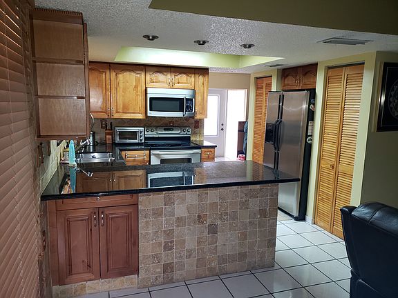 BUYER'S ONLY. Our comfortable single-family home has been with our family since it was built. Its location and layout make it an exceptional home for raising a family, hosting family and friends, and beyond. The front entrance features a small set of stairs with handrails on both sides and coverage over the front-door. Every window and door is protected by hurricane impact shutters, secured by lock and key. Upon entering, you are greeted with a high ceiling and staircases leading to the first and second floors. The first floor features a bedroom, full bathroom, kitchen, living room, office/study, and a dining room plus a family room. The layout, coupled with a kitchen window and 4 points of entry provide plenty of accessibility, natural light, and mobility around the house. Beginning on the right of the first floor, you’ll find the dining room, two sets of doors, and a smaller family room. Adjacent to this space is the office/study room that can easily be used for storage or an additional bedroom. Continuing left of the dining room is the kitchen, with modern features, a granite counter-top and stainless-steel appliances. The cabinetry provides plenty of storage space around the kitchen and the counter seats up to 4 barstools. Adjacent to the kitchen is the larger living room connecting to a hallway leading to the laundry room, a full bathroom, and a large bedroom with a built-in closet. Coming back through the hallway, you’ll find another access point to the stairs. The second floor features three bedrooms, two full bathrooms, access to the front balcony and plenty of large secure windows for natural light. Starting on the left is the master bedroom. Within it you'll find a large full bathroom and a spacious walk-in closet. Outside of the master is another full bathroom, a linen closet, and two additional bedrooms with built-in closets – one of which connects to the house’s balcony. The driveway has ample parking for multiple vehicles. You’ll also find a wide concrete path that leads to the fence gate and a side-entrance to the first floor’s dining room. Beyond it is the rest of the backyard. The backyard is one half tile and the other half grass. It is partially covered and has pillars for a potential roof expansion. Providing plenty of shade, privacy, and security is a green wire-fence completely covered by tall, beautiful areca palms. Upon entering you'll find open staircases and a high ceiling leading to both floors. The first floor has an open dining room space with an adjacent office/storage room that can easily become an additional bedroom. The kitchen is modern with a granite counter-top and stainless steel appliances. Adjacent to the kitchen is an open living room. This leads to a hallway connecting the laundry room, a full bathroom, and a large bedroom with a builtin closet. The second floor has the master bedroom. Within it you'll find a large, full bathroom and a large walk-in closet. Next to the master is another full bathroom. Adjacent to this bathroom, are two additional bedrooms with built-in closets. The front facing bedroom also connect to the house front balcony. The driveway has ample parking. There is a concrete path that leading to the fence gate. Beyond it you'll find the secondary entrance to the house's first floor. The backyard is one half tile and the other half grass. It is partially covered and has pilar points for a potential roof expansion. Encasing the yard are areca palms that provide great coverage and privacy.