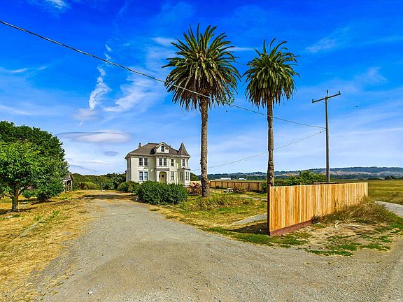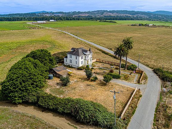 This Queen Anne Victorian is a true gem in the lush Ferndale Valley. Just minutes from the historic Victorian Village of Ferndale, the home offers privacy, sweeping pastoral views, and timeless architecture. Framed by two iconic palms, the residence stands as a landmark property awaiting its next chapter. It features four large bedrooms, multiple living and sitting rooms, a formal dining room, and abundant natural light throughout. A walk-in attic and basement offer exceptional storage. Outside, the 16 acres offer room for livestock or horses. A detached two-car carport with potting room add to the property's versatility.