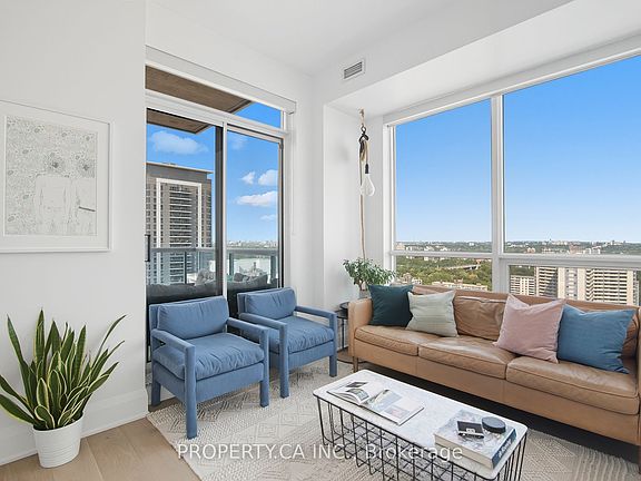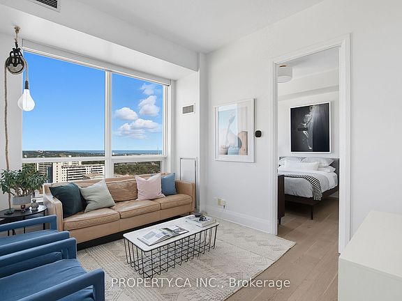 Perched above the city with treetop views stretching over Rosedale to Lake Ontario, this thoughtfully redesigned 837sqft home offers a rare Toronto experience connected to everything, yet quietly set apart. Inside, soaring 10-foot ceilings create a true sense of openness, while the split 2-bedroom, 2-bathroom layout is both functional and inviting perfect for everyday living and effortless entertaining. Expansive windows flood the interiors with natural light and frame sweeping, uninterrupted views that go as far as the eye can see. Every detail has been carefully considered: a sleek modern kitchen, wide-plank oak engineered hardwood, smart home features for convenience, and a rare dual HVAC system for year-round comfort. The building is exceptionally well managed and offers five-star amenities, including a 24-hour concierge, fitness center, yoga room, theatre, party room, games room, and co-working space. The location is unbeatable just steps from grocers, parks, cozy cafés, Bloor Street shopping, the community center with pool and library, and two subway lines that connect you seamlessly across the city.