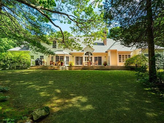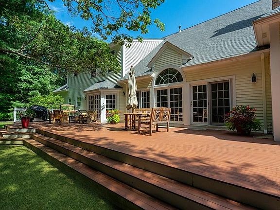 Beautiful custom colonial privately set on 1.5 acres in the desirable south side of Weston. This home encompasses over 6000 square feet of luxury living and open floor plan for today's family. The twelve-room, five-bedroom residence offers spacious rooms and high ceilings. A stunning two-story foyer with circular staircase, formal living room with fireplace & picture window, banquet size dining room. A chef's kitchen open with breakfast area leads to a spectacular two story great room with custom built-ins and walls of glass with French doors to a large deck overlooking private backyard. There is a wood paneled library and the opportunity for either a first floor, or second floor master bedroom suite. The second floor includes four additional bedrooms, play area and 3 full bathrooms. Professionally landscaped grounds, on this private wooded setting, conveniently located to all major routes & schools.