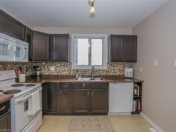 Beautifully updated 3 bedroom, 2 bathroom condo in highly sought after South London location. Excellent opportunity for first time buyers or investors! Large unit with 1,780 sq ft of finished living space. Main level boasts updated kitchen, traditional dining room, 2-piece bathroom, and large living room. Walk out to your private courtyard patio - the perfect spot for summer entertaining! Second level offers a generous sized master bedroom with custom built in closets, 4-piece bath, and 2 additional bedrooms perfect for children, nurseries or office space. Finished lower level with oversized family room includes stunning built in walnut bar plus separate laundry/storage area. This unit has been updated with gas furnace and central air conditioning in 2013. Situated close to the 401, excellent schools, White Oaks Mall, Victoria Hospital, Restaurants, and across the road from The Fitness Form. This home has been meticulously maintained and pride of ownership is evident from the moment you step foot through the front door! One assigned parking space included plus plenty of additional visitor parking available. Very reasonable condo fee that includes water. All appliances included. Book your appointment today to take advantage of this fantastic opportunity!