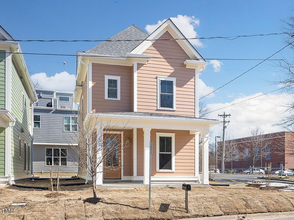 GORGEOUS new construction in Old East Durham! This charming home features a layout that has it all! TWO en-suite bedrooms with ample space both in closets and baths & l@@k at the private balcony off the Primary!! A third bedroom/flex space could easily be used as an office and is located on the main level. The STUNNING kitchen features plenty of storage, tremendous quality and functionality with its large island, solid quartz counters, dovetail constructed, soft close cabinets and beautiful tile backsplash. Luxe baths and incredible finishes finish off this incredible home and all backed by a one-year builder warranty! Short walk to all the best East Durham Eateries, HiWire/Golden Belt & DOWNTOWN! Do not miss out!