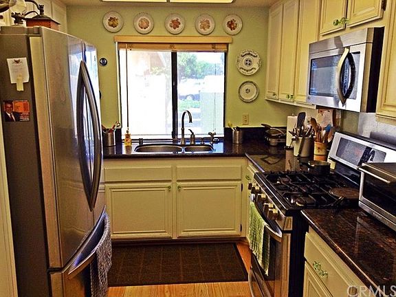 Very rare, single story, end unit, turnkey. This complex has been sought after for many many years. With 2 pools and a recreation center, nice open space and plenty of green belts, you will feel right at home. Whether you are a first time buyer or downsizing, this home is perfect. New engineered Siberian Pine floors, new granite counter tops in the kitchen, new stainless appliances, built-in cabinetry throughout. Fireplace in the living room make this very cozy. There is even a private yard, if you have pets. 2 HUGE bedrooms, attached garage, with laundry and access from your private courtyard. Low association, that covers some utilities. Water softener and water filter are included. Just in time for summer, come make this house your home.