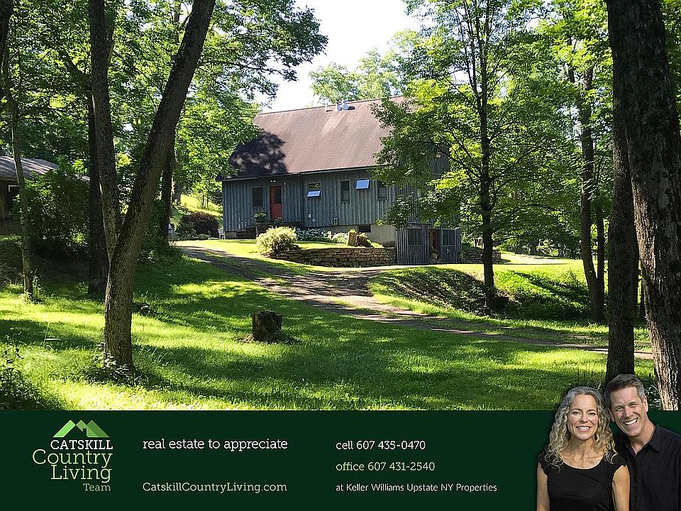IDYLLIC PRIVACY is the first thing that comes to mind as you drive down the 2 TOWN-MAINTAINED dead-end roads to this property. As you arrive at this 1999, EUROPEAN-INSPIRED HOME, you note its thoughtful integration to the natural environment. Built from the ground up (literally) with ENERGY EFFICIENCY in mind, the home offers a truly beautiful lifestyle. Each piece of wood in the home (save for the high-quality wood Andersen windows) came from the property. HAND-CUT CHERRY WALLS and handsome solid MAPLE FLOORS make for stunning rooms. The home, designed with an INNOVATIVE PASSIVE SOLAR heat-sink technology, traps and stores heat throughout the summer and recirculates that heat all winter via an easy-to-maintain airflow system. One of only a few such properties in the area, this very desirable construction keeps temperatures comfortable with minimal expense. The ANDERSEN WINDOWS and tight-fitting construction mean the home is cool in summer and warm in winter. GAS-LOG FIREPLACES, one on the ground floor and one in the living room, add a lovely ambiance and additional warmth, but are seldom needed to heat the home. The large OPEN-PLAN MAIN FLOOR has a bedroom and full bath combination, with access from 2 sides. The CATHEDRAL CEILING living room area is open to a large front porch, but also to a dining area, which opens to the kitchen, making for easy parties, and family gatherings. The 1120 square foot finished ground floor has a bedroom, full bath, and small kitchenette, complete with sink, counter, and microwave. It is ideal for entertaining, or even used as a separate apartment. A small pellet stove, strategically placed next to the double doors, makes coming in from cross country skiing, snowshoeing or hunting expeditions a pleasure. The top floor is currently unfinished, but is roughed-out for 2 additional bedrooms and a large bathroom -- insulation, plumbing and electric service are all in place, ready for your finishing touches (making the home a total of 4 possible bedrooms and 3 bathrooms). The grounds around this ultra-private 11-acre lot truly set it apart. Trails lead through the woods to the top of the mountain, and to a large pond, and along the stream below. Great, hand-laid stone walls, and carefully constructed mature perennial gardens with massive stonework complete the setting. There is a heated single-car garage close to the house, and a larger multi-bay garage/barn and machine shed at the property's entrance that can hold numerous tractors, and other equipment, or big kid' toys. Minutes from Franklin, and Oneonta, this is a great family home for those who love private, energy-efficient living.