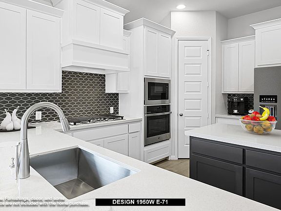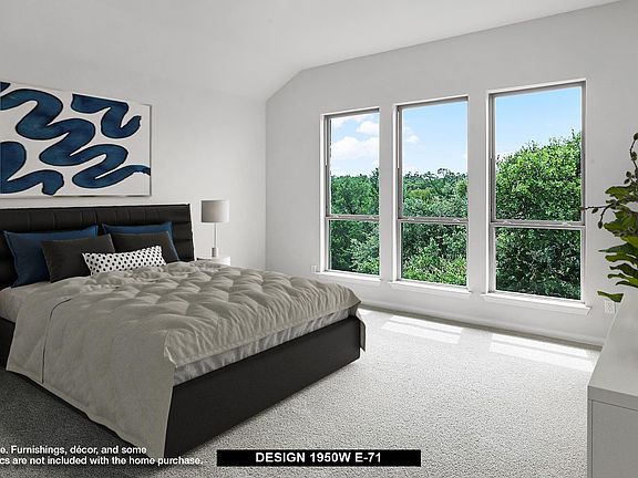 Home office with French doors set at entry with 11-foot ceiling. Open kitchen offers center island, 5-burner gas cooktop and corner walk-in pantry. Dining area is adjacent to open family room with wall of windows. Spacious primary suite. Dual vanities, garden tub, separate glass-enclosed shower and large walk-in closet in primary bath. Secondary bedrooms include walk-in closets. Covered backyard patio. Mud room off two-car garage.