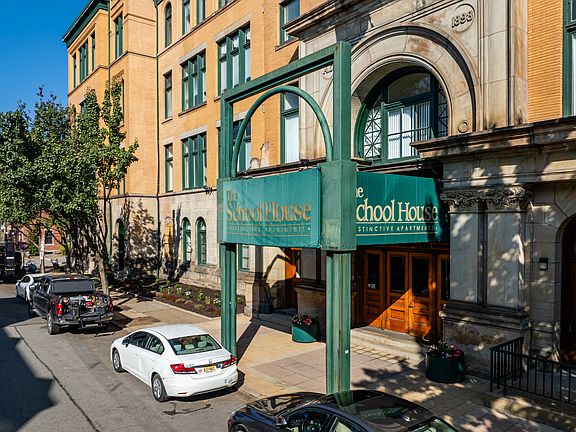 School House Apartments is a located in the national historic district of Deutschtown, Pittsburgh! The historic building was once the Latimer Middle School designed by German-born Pittsburgh architect, Frederick C. Sauer. Built in 1898, the historic landmark is a yellow, four story building with a variety of different style windows. On the fourth floor, south-facing apartments, you'll get the most stunning views of downtown Pittsburgh. Right behind the School House sits the Allegheny General Hospital, and to the west is a handful of parks and the National Aviary. We sit 1.2 miles from PNC Park and the Andy Warhol Museum, and 1.6 miles from Acrisure Stadium. There are a number of amazing local restaurants and small owned businesses that are walkable distance from the School House too.