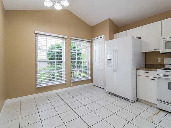This four-bedroom, two-and-a-half bathroom rental home in Orlando features some charming tropical landscaping. Inside, a wall of oversize windows graces the great room, which boasts a soaring vaulted ceiling with a lighted fan. The open floor plan guides you into the kitchen, which offers a pantry and tiled floors. Have breakfast in the kitchen's nook or at the convenient granite-topped breakfast bar, or invite guests to join you in the formal dining room. Its chandelier gently illuminates your evening meal. You could also dine on the screened patio in the verdant backyard. Upstairs, the master suite includes a walk-in closet and plush carpeting. A walk-in shower and twin-sink vanity promote a pleasant start to each day. Apply for this home today.