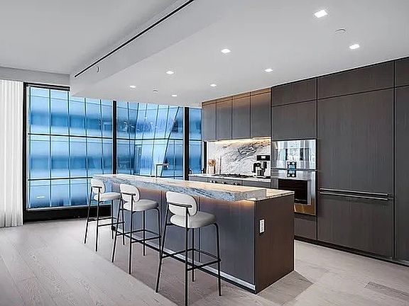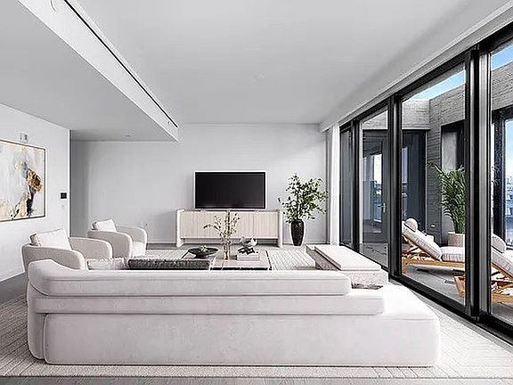 Enjoy great sunsets from this brand new 2,054 SF two-bedroom, two-and-a-half-bathroom home with stunning Hudson River views and a 472 SF terrace. The expansive great room features an open kitchen with custom Grey Larch cabinetry by Bulthaup, White Princess Quartzite countertops, and a premium Gaggenau appliance suite complemented by stainless-steel fixtures from CEA Design.