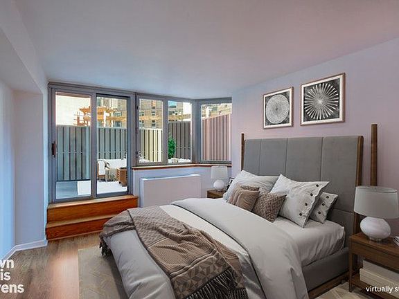 Private Garden Oasis that boasts approximately 406 square feet of outdoor space and 645 square foot renovated Interior. This sun-drenched one bedroom home features new flooring, oversized windows, and a renovated kitchen with top-of-the-line stainless steel appliances. Direct access to the outdoor private terrace from both the living room and the bedroom. Ample closet space provides for maximum storage.The Strand is a full-service luxury condominium, offering amenities such as: full-time doorman and concierge, indoor rooftop swimming pool, fitness center, bike room, storage, parking garage, laundry on each floor, dry cleaning on premises, outdoor roof deck and private lounge. Pet Friendly. Conveniently located in the exuberant Theater District in the vibrant Midtown West. Walking distance to transportation, fine dining, shopping and entertainment, Hudson Yards and the gateway to Chelsea.