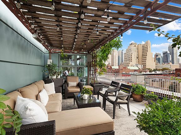 With an entry from every room of the apartment, the irrigated outdoor oasis is landscaped with beautiful plantings including wisteria on a handsome pergola, climbing hydrangeas, a red maple tree, boxwoods, hostas, dahlias, and daylilies. This spacious outdoor space features separate areas for grilling, dining, lounging. The terrace is the beneficiary of the same stunning views as the apartment, sunsets are truly a sight to behold, and the nighttime view is simply magical. With an unrivaled indoor/outdoor experience, entertaining from this residence is an absolute delight.
