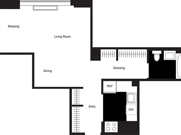 Lovely Alcove Studio, 1 Bath with northern exposure, gourmet kitchen, and great closet space.
