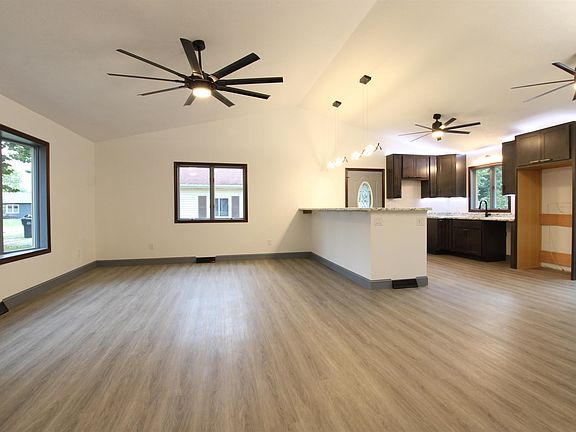 ABSOLUTELY BEAUTIFUL NEWLY REMODELED HOME IN HAMLET - Incredible open concept room layout with cathedral ceiling throughout living area. Custom kitchen with plenty of cabinets and huge breakfast bar. Custom lighting and new plank flooring throughout. 2 full baths and plenty of storage space. Stone and vinyl exterior includes large wraparound deck and landscaped corner lot . 24' X 28' insulated detached garage. West Davis Street.