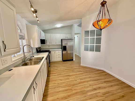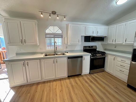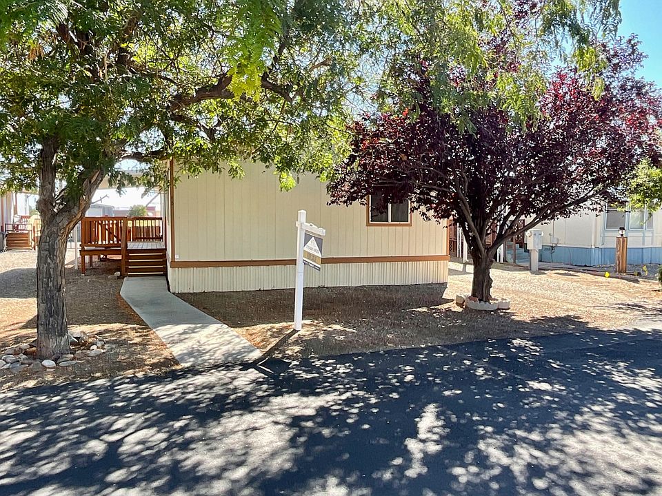 Welcome home to this beautifully refreshed 3-bedroom, 2-bath manufactured home, thoughtfully upgraded from top to bottom and ready for you to move right in! Look inside to discover an inviting, open layout with recently installed luxury vinyl plank flooring throughout the main living areas, complemented by fresh interior paint and updated window blinds. The fresh carpet and pad in all bedrooms add warmth and comfort, while the ceiling fan and recently installed central heating and A/C system ensure year-round comfort. The kitchen has a recently upgraded sink, faucet, and garbage disposal, offering both function and style. Both bathrooms have been refreshed with recently installed toilets and modern fixtures, creating a clean, comfortable feel throughout the home. Outdoors, you'll enjoy a large, covered deck-perfect for morning coffee or evening gatherings-as well as a spacious fenced backyard that's ideal for gardening, pets, or play. The oversized storage shed offers plenty of room for tools or hobbies, and the covered carport adds convenience and protection from the elements. This park is in the heart of town with great access to shopping, restaurants, and convenience stores.
