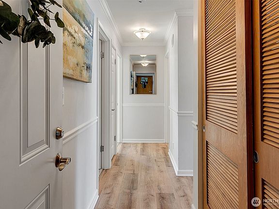 Spectacular skyline, bay, and mountain views from this bright, updated corner home on Queen Anne’s south slope! Part of a well-managed, established co-op known for its stability & charm. Exceptional value: $1,170/mo HOA covers water, sewer, garbage, internet, cable TV, earthquake ins., building maintenance & property taxes—predictable monthly costs often comparable to a condo. One of only four corner units, this 2BR/1.5BA, 1,000-sq-ft residence offers sunny E/S exposure, open kitchen, LVP flrs, in-unit W/D & custom closets. Elevator and stairs are central for privacy. Includes assigned parking & 2 storage spaces. Walk to cafés, dining, and transit to SLU and downtown. Pet-friendly. Walk Score 86. An urban sanctuary with stunning views!
