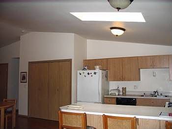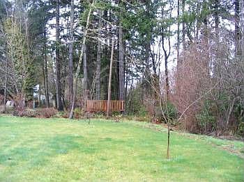 Large open kitchen/family room, living / dining room laminate/carpet, indoor laundry closet, large pantry, all stainless appliances, manicured landscaped yard, 50' greenbelt at rear, large mature trees, circle driveway, large master w/ensuite bath and large walk-in closet. 14 x 42 wooden back deck, garden area, RV hookup, double attached garage, vaulted ceilings, skylight, eating bar, kitchen eating area, dead end street. Excellent condition.