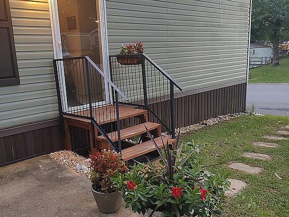 Shaded lot with treesWood grain vinyl flooringModern cabinets