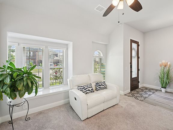 Beautiful single story home on corner lot! VA Assumable 2.75% for qualified buyers. Stunning curb appeal with stone elevation, glass door with iron, and nice landscaping with stone border. Wood look floors adorn the halls, kitchen, dining, and family room. Open great room floor plan with tons of natural light. Gourmet kitchen with granite counters, white cabinetry, & stainless appliances. Spacious Primary Bedroom is perfect for king size furniture. Primary also features large dual closets, dual sinks, and oversized shower with seat. Backyard with covered patio and beautiful landscaping is perfect for outdoor living & entertaining. This home is a MUST SEE!