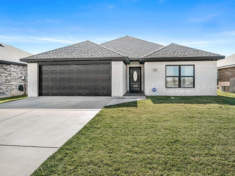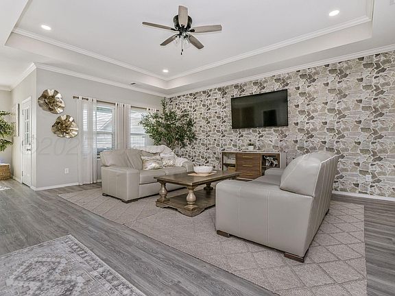 Check out this stunning home with incredible curb appeal, featuring sleek modern finishes and exterior lighting that accentuates its beauty. Inside, you'll find luxurious granite countertops throughout and custom finishes. Best of all, there's NO carpet anywhere! The spacious primary bedroom is thoughtfully situated at the front of the home for added privacy, while all closets offer generous storage—two of which are walk-ins. The open living area boasts impressive 10' tray ceilings, and the dining and kitchen areas feature 9' ceilings. Don't miss the covered back patio, perfect for enjoying outdoor moments in style!