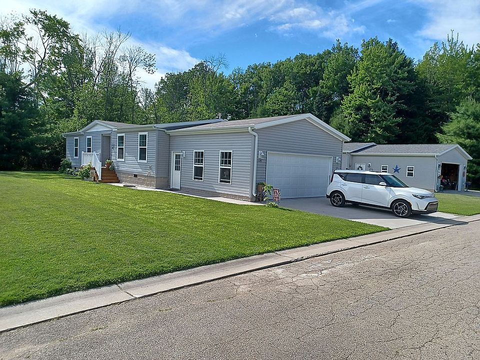 Immaculate 2021 3 bedroom, 2 bath, 1400 sq ft home 2021 Schult, Energy Star doublewide manufactured home. Large walk-in sit down shower in main bedroom, second bath has a tub/shower. Drywall throughout, natural gas heat, central air conditioning and two ceiling fans. Deluxe stainless refrigerator, range, dishwasher and over the stove microwave. Attached two car garage, insulated and drywalled. Split face concrete skirting, two decks. Very quiet location, low taxes. Very well kept manufactured home park. This immaculate, like new home is move in ready!