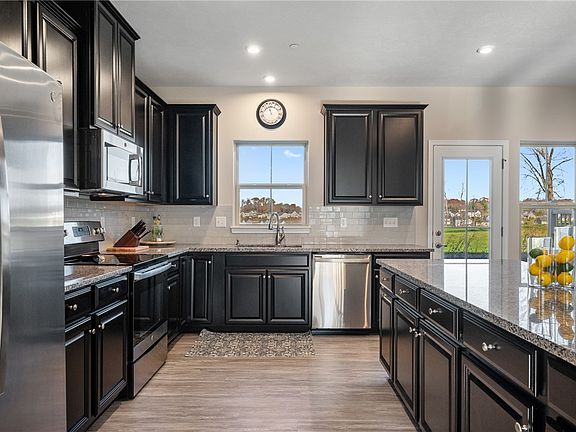 ABSOLUTELY STUNNING barely lived in end unit townhome, backing to the golf course, on a cul-de-sac. Spacious open floor plan with FANTASTIC rich looking 42in staggered cabinetry, 8ft island (stools stay), neutral grey backsplash, tons of recessed lights, granite counters, pantry, large eat in area w/access to the freshly poured patio, GORGEOUS sun drenched living room, large powder room and storage closet account for the generous square footage on the main floor. FABULOUS master suite with an oversized walk in closet, expanisive vanity w/double bowl sink and vanity area. HUGE ceramic shower with dual heads, 2 additional great sized bedroom, main bath and laundry finish off this second floor space. This PRISTINE home has the upgraded craftsman package, 4ft extension, easy to finish lower level for additional living space, and brick/hardie plank exterior facade. Great location in Penn Township w/easy access to Rt. 22.