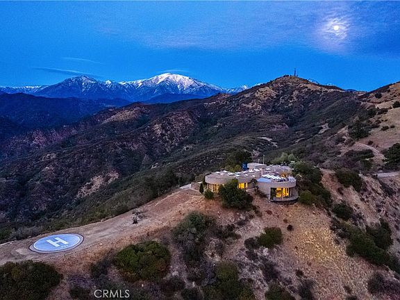 Presenting one of the most stunning and private estates in all of Southern California! Perched on 73 acres, and encompassing over 5000 square feet this 4 bedroom 3 bathroom fabled home that many have longed to see since its construction in 1990, features the ultimate in seclusion and privacy. While only being minutes from the charming Glendora Village, top rated schools, and much more. Work in Los Angeles or beyond? Commute right from this homes private helicopter pad! Situated at the end of the prestigious Bluebird Ranch behind two separate security gates, this estate is surrounded by Conservancy land, and National Forest, which ensures you a lifetime of nature and space. The views are absolutely unparalleled especially at this 2600 foot elevation above the city. Take in sweeping views of the valley and twinkling city lights, ships sailing off the Orange County and Los Angeles coast lines, the fire works at Disneyland... see Mt Palomar in the distance, and incredible views of Mt. Baldy and Wrightwood. Step inside this epic space, and you'll see a home that was tastefully and thoughtfully designed and engineered by AC Martin Partners as an art piece in harmony with the land. Passive solar design uses skylights and walls of glass cleverly designed to take advantage of the sweeping views and breezes that cool the home. 18 inches of earth on the roof help keep the house comfortable all year long and allow for a memorable roof top garden to take in the truly 360 degree views. A main "Great Hall" sets up what is a breathtaking experience inside and leading you to three separate wings containing the massive living room, library, office, game room, and bedrooms. Enjoy airplane-like views, and natural beauty from multiple decks and the rooftop as you wait for the helicopter to pick you up and take you out for a night on the town. This is one of the most special and unique estates to hit the market and it offers a living experience like no other.