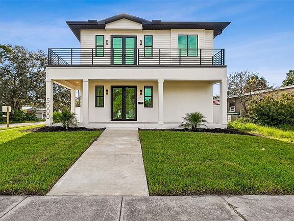 Welcome to 5000 Chancellor St NE—a thoughtfully designed modern home blending style, comfort, and functionality in one of St. Petersburg’s most sought-after neighborhoods. This brand-new construction features soaring 10-foot ceilings and sleek 8-foot doors throughout, creating an open, airy flow filled with natural light. The home offers 3 spacious bedrooms and 2 beautifully appointed bathrooms, perfect for modern living. Step into the chef-inspired kitchen, highlighted by custom cabinetry, quartz countertops, stainless steel appliances, and a large island with pendant lighting—ideal for cooking, entertaining, and gathering. The expansive open-concept living and dining space is accented with contemporary fixtures and wide-hardwood flooring, seamlessly connecting to the outdoors. The primary suite is a retreat of its own, complete with a private balcony, walk-in closet, and spa-like bath featuring dual vanities, designer finishes, and a glass-enclosed shower. Secondary bedrooms are generously sized, with large windows and ample closet space. Additional highlights include: • Designer lighting and hardware with a modern touch • Two-car garage with sleek doors • Covered front porch and upstairs balcony for indoor-outdoor living • Screened-in lanai and fully fenced backyard for relaxation and privacy Conveniently located near vibrant Downtown St. Pete, waterfront parks, dining, shopping, and just minutes to the beaches, this home offers the best of Florida living with modern luxury. Don’t miss your opportunity to own this new construction home in one of St. Pete’s premier locations!