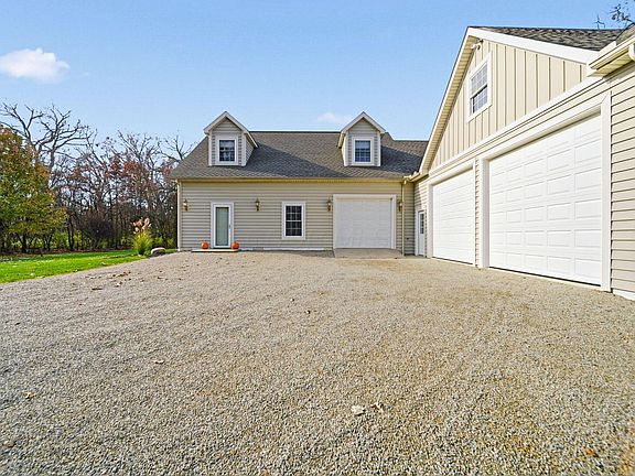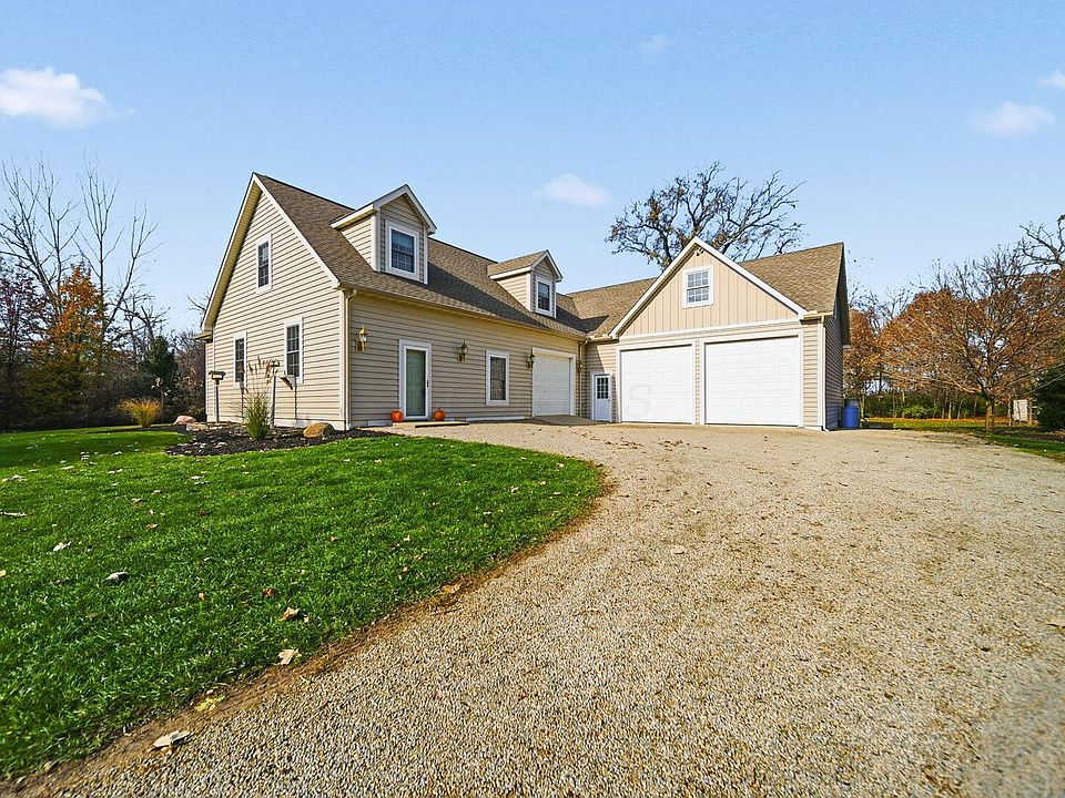 Rare opportunity to own a thoughtfully designed 2 story home on 3.13 wooded acres in Plain City. This property showcases quality workmanship, comfort, and convenience in a peaceful country setting. The home offers 3 bedrooms, 3 full baths, and spacious rooms with plenty of storage, including a 23' x 27' great room with 10-foot ceilings, large pantry, and well-placed closets and cupboards. Practical features abound such as a large laundry room with chute from the upper level, insulated/drywalled attic spaces, custom cabinetry, reverse osmosis system, water softener with garage refill hopper (no carrying heavy bags down to basement), new water pressure tank (2023), and HVAC system with Electric Furnace central A/C (new in 2023). Wood burner also available for axillary heat. The garage offers diverse amenities including a pit for vehicle maintenance, kitchenette with sink (ideal for canning/food prep), and hand water pump in the garage for water access if power outage were to occur. For hobbies, storage, or business, the attached 32' x 42' insulated workshop (2017) features custom cabinets, wood stove, and stairs to a spacious Cape Cod-style unfinished bonus-room with multiple potential uses such as an apartment, office, or recreation space. Outdoor living is equally appealing with a winding drive, mature trees, and wildlife views year-round. Three outbuildings include a storage shed, a small barn/chicken coop, and a charming little cottage nestled in the woods. Designed with future flexibility in mind, this property can accommodate additions, expanding westward for even more living space. A rare blend of comfort, craftsmanship, and country charm, this home offers peaceful privacy with practical amenities ready for its next owner to enjoy.