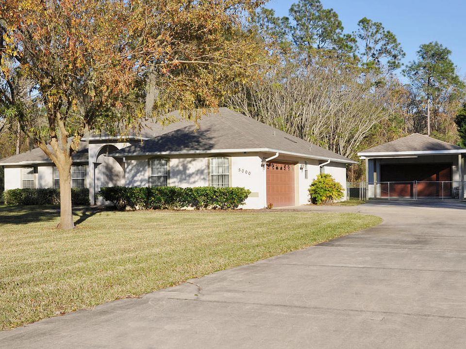 This is absolutely a must see home. It has the feel of country living that's close to town and the beaches. This 4 bedroom/ 2 bath/ 2 car garage home sits in the middle of a beautiful 1 acre lot. Chain link fence on the back half of the property. Split floor plan, vaulted ceilings, gas fireplace and screened patio. A hobbyist dream 22x30 insulated work shop with adjacent 2 car carport and an additional 23x15 storage shed for toys and yard equipment. Approximate 1 year new roof on home, work shop and storage shed. Separate well pump for the yard sprinkler system.