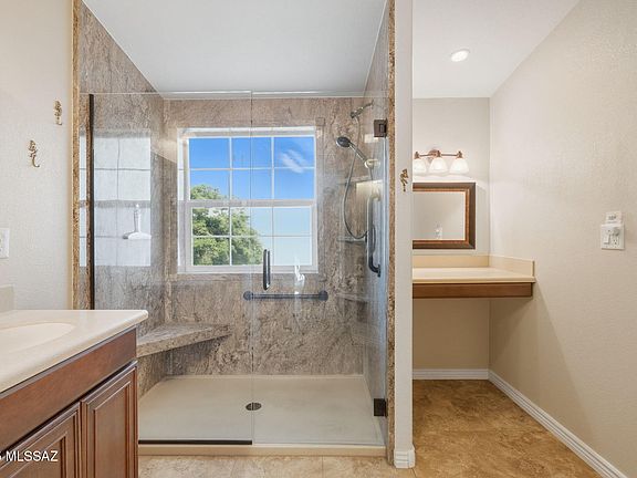 Beautifully maintained 3-bedroom, 2-bath Cavco doublewide in the highly desirable Far Horizons 55+ Community. Nestled among mature trees and lush landscaping, this home offers a sense of privacy while being in a prime location near top restaurants, shopping, and everyday conveniences. Step inside to a fully upgraded interior featuring a spacious great room with an open layout--perfect for entertaining guests or relaxing at home. The primary suite is designed with comfort in mind, showcasing a double vanity and a large walk-in shower with built-in seating and an elegant tile surround. This home also features a PAID-OFF solar system, providing you with the benefit of energy savings with no additional monthly costs. A new water heater was installed in 2018 for added peace of mind. Life at Far Horizons is all about community and amenities. Enjoy a year-round heated pool, fitness center, shuffleboard and bocce courts, billiards, ping pong, banquet hall, card room, library, and weekly mindfulness classes. A low monthly assessment fee of just $282.96 covers water, sewer, trash, and recycling pickupmaking for truly low-maintenance living. Don't miss this opportunity to own a home in one of Tucson's most active, welcoming, and amenity-rich communities.