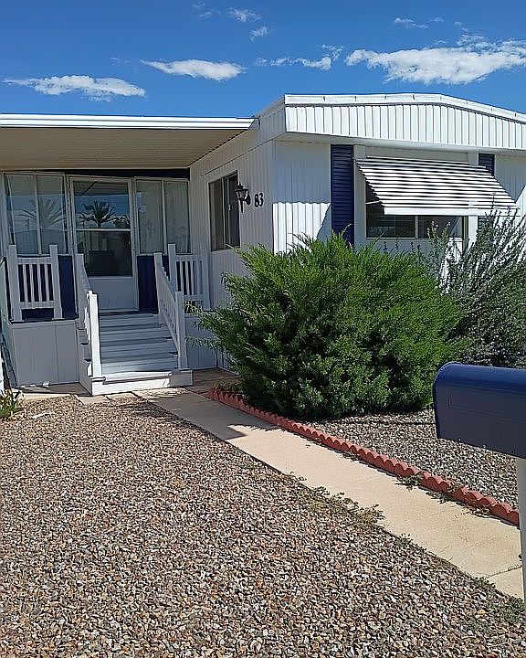 This 980 sq ft home has 2 bedrooms, 2 full bathrooms, open concept kitchen/living room, gas stove top, new mini-splits, W/D, microwave, Arizona room 9'x24', carport and a storage shed.