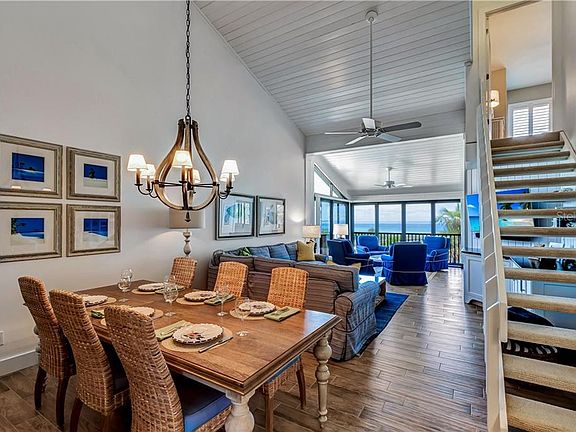Preferred outer unit with double walls of sliding glass doors, maximizing one of the most dramatic views in the Boca Grande Club. Overlooking all 7 miles of gorgeous Boca Grande, coastline, this meticulously designed, upper floor property is ideal for the casual coastal lifestyle. Elegantly remodeled, and comfortably furnished, this 3-bedroom, 3 bath property fits the beach front lifestyle and is ready for instant enjoyment. The two-story property has soaring vaulted ceilings, impact resistant windows and sliders, paneled wood ceiling and the master and a guest bath have been beautifully renovated. Enjoy the magnificent gated community of the Boca Grande Club with its private beach, tiki bar, premier indoor/outdoor Gulf front dining Club, state of the art fitness center, personal trainers and classes, eight clay tennis courts, 4 resort style heated pools and concierge beach service.
