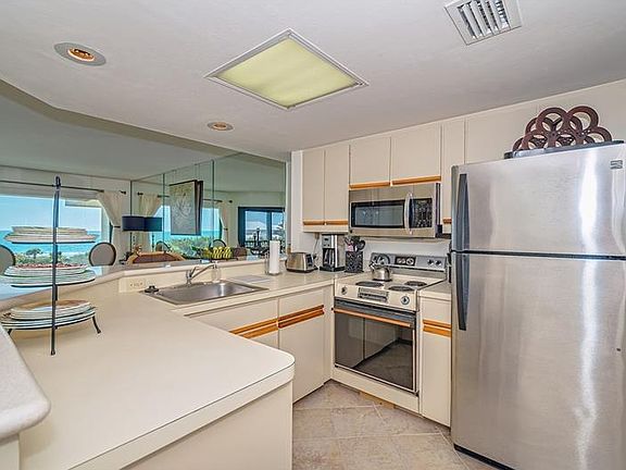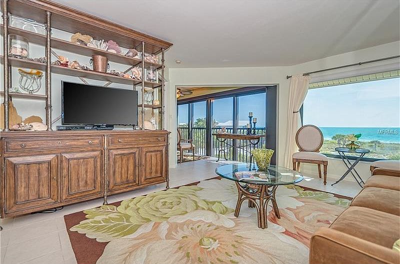 Spectacular panorama Gulf views, top floor condominium with elevator, this rarely available open floor plan includes one bedroom, one bathroom, with glass enclosed porch off the master for additional living space. This property is being offered completely furnished and ready to enjoy. Centrally located within the gated Boca Grande Club with amenities which include; Gulf front restaurant & clubhouse, pool side tiki bar, three swimming pools, eight Har-Tru tennis courts, and a state-of-the-art Fitness Center.