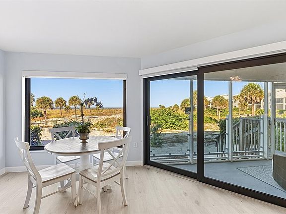 Enjoy expansive views of the Gulf from this desirable 1 bedroom, 2 bath waterfront condominium where the beach literally becomes your backyard. Located in the Dunes Chalet Association at the exclusive Boca Grande Club on Gasparilla Island, this first-floor beachfront condo with elevator access offers an open floor plan with high ceilings and high-end finishes. Recent renovations include new impact rated windows and doors, wide plank flooring, fresh paint, and new ceiling fans. Updates to the kitchen include quartz counter tops and stainless-steel appliances. The master suite has a walk-in closet, walk-in shower, and dual vanities with new lighted mirrors. Recent building improvements by the Dune Chalet Association include a new roof, new exterior doors, updated lighting, and sleek glass railings for unobstructed views of the white Gulf beaches and stunning sunsets. A nearby dunes walkway leads to an uncrowded beach. The Boca Grande Club is a private members only beachfront community offering 3 heated pools, an exquisite waterfront dining room, a poolside Tiki Bar, 8 Har-Tru tennis courts, a pro-shop with a robust tennis program, and a newly updated fitness center. This rare combination of luxury amenities, pristine location, and turnkey condition creates an exceptional opportunity for discerning buyers seeking the ultimate Florida coastal lifestyle.