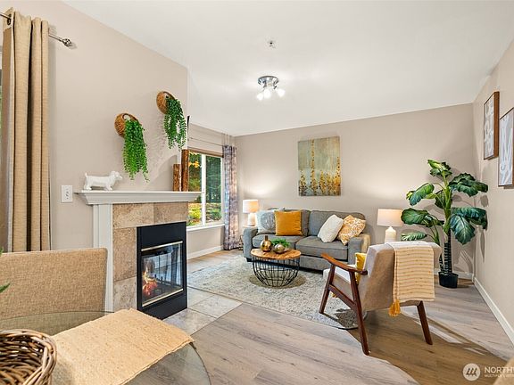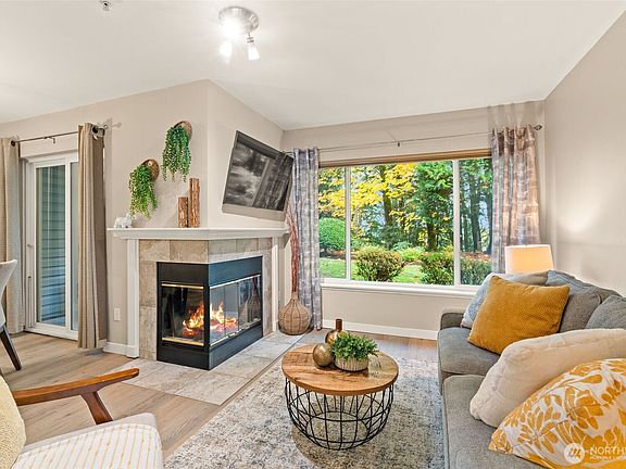 Welcome to Montreux! Nestled against a lush greenbelt on the northern slopes of Cougar Mountain, this peaceful ground-level condo offers the perfect blend of nature & convenience. Enjoy miles of hiking trails, nearby Cougar Mountain Regional Wildland Park, Lake Sammamish, and Mountains to Sound Greenway. Inside, you'll discover new flooring, updated kitchen with new cabinets/countertops, dining area, spacious bedroom, cozy wood-burning fireplace, and peek-a-boo lake view. Don't miss the covered patio, extra storage room, and covered parking. NO RENTAL CAP, ideal for investors or homeowners alike! Highly rated Issaquah schools, pet-friendly community, well-managed HOA, and easy freeway access with a short commute to Bellevue or Seattle.