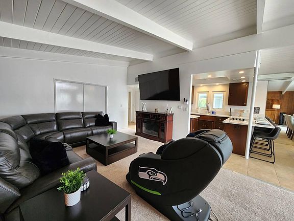 MONTH TO MONTH WINTER RENTAL PEEK-A-BOO NEWPORT OCEAN VIEW. LARGE 4 BEDROOM 2 BATH FULLY FURNISHED VACATION RENTAL - 50 STEPS TO SAND. RECENT REMODEL. FULLY FURNISHED AS A MONTH TO MONTH VACATION RENTAL. 5 BRAND NEW TELEVISIONS INCLUDING AN 86" TV IN LIVING ROOM, BRAND NEW ELECTRIC MASSAGE CHAIR, BRAND NEW BEDS. WASHER AND DRYER UPSTAIRS IN UNIT AND EXTRA LARGE UNITS IN GARAGE. LARGE BALCONY WITH A PEEK-A-BOO OCEAN VIEW. PARKING FOR 4 CARS INCLUDING A LARGE ONE CAR 28' DEEP GARAGE, A 2 CAR CARPORT AND PARKING IN FRONT OF GARAGE AND CARPORT.