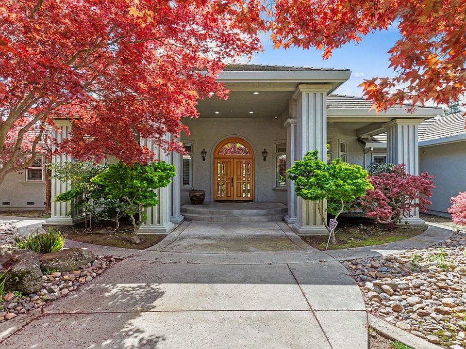 Welcome to 5000 Peach Blossom Ln - A Private, Luxury Retreat on 3.22 serene acres, single-story estate offers the perfect blend of elegance, comfort, and equestrian excellence. Built in 2003, this expansive 4,678 sq. ft. home features 5-6 bedrooms and 3.5 bathrooms with 3 distinct wings. At the heart of the home is a chef's dream kitchen, with top-of-the-line Viking appliances, a Sub-Zero refrigerator, oversized center island with sink, a separate prep sink by the cooktop, warming drawer, double ovens, and a spacious walk-in pantry. The finished 3-car garage offers ample storage, while 72 fully owned solar panels provide energy efficiency for both the home and the pool. Step outside and discover your own resort-style oasis. The oversized pool features 3 waterfalls, surrounded by lush landscaping, a peaceful koi pond, and an abundance of fruit trees. For equestrian enthusiasts, this property is truly exceptional. It features two arenas, including a 100x160 covered arena equipped with sprinklers, lighting, water, and coarse sand. The custom-designed horse barn includes covered stalls with power and water, dedicated wash bay, tack & feed room, and a full bathroom. Additional amenities include an RV pad and OID irrigation. This is more than just a home it's a rare opportunity!