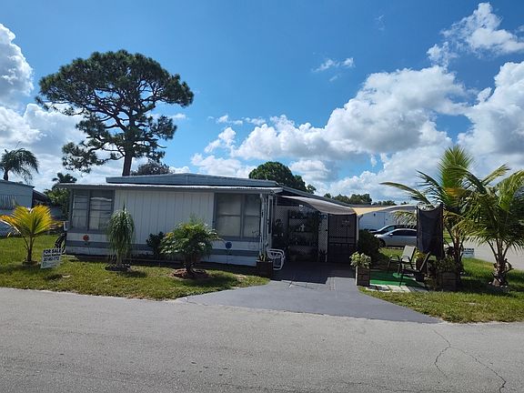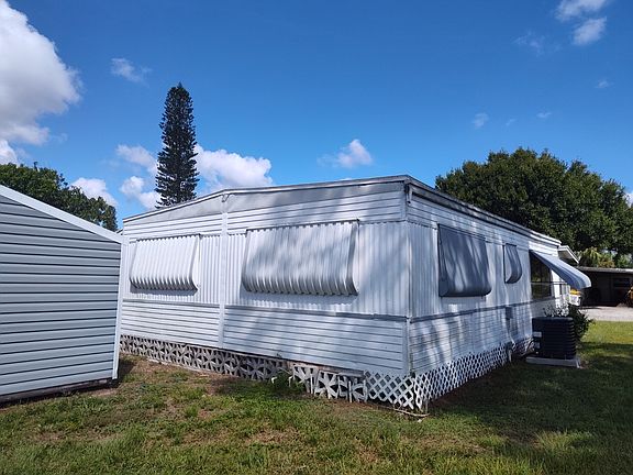 **WELCOME HOME**SPACIOUS 3 bed 1.5 bath 955 SQ.FT., in SUNSHINE MOBILE MANOR - ALL AGES WELCOME**MOTIVATED SELLER** Lot rent is currently $900 per month and includes lawn, water, sewer, trash, and cable, along with the park's wonderful amenities, which include a pool, clubhouse, shuffleboard, and a playground to name a few. This home sits on a CORNER LOT and offers 2 driveways, a large carport, and 2 sheds. BOASTING NEW PLANK FLOORING, 2017 ROOF OVER, AND 2022 A/C. Walking into the home, you will be greeted with a charming kitchen and an eat-in breakfast area perfect for your morning coffee. The kitchen leads to an open living room and the extra den/ 3rd bedroom or office. There are 2 spacious bedrooms, one with a half bath. The guest bath has been beautifully updated with flooring, vanity, and shower. Sunshine Mobile Manor sits in the heart of Stuart. LOCATED JUST 17 MINUTES FROM STUART BEACHES!! Call today to schedule a showing or make an offer. All listing information is deemed reliable but not guaranteed and should be independently verified through personal inspection by appropriate professionals. Our company does not and cannot guarantee or warrant the accuracy of this information or the condition of this property. Measurements are approximate. The buyer assumes full responsibility for obtaining all current rates of lot rent, fees, and pass-on costs. Additionally, the buyer is responsible for obtaining all rules, regulations, pet policies, etc., associated with the community, park, or home from the community/park manager. Our company is not responsible for quoting said fees or policies.