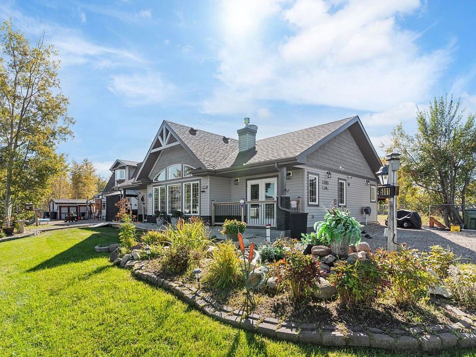 This stunning 2017-built bungalow in Val Quentin combines modern elegance with lakeside charm, offering 2 spacious bedrooms, 2 bathrooms, and a garden suite with its own washroom above the oversized double garage. Set on a large, beautifully landscaped lot with lake views and RV parking, the home features an immaculate open-concept design with vaulted ceilings and massive windows that fill the living, dining, and kitchen spaces with natural light. The kitchen impresses with granite countertops, a large island, stainless steel appliances, and a custom industrial steel backsplash with matching lighting. With its pristine condition, versatile garden suite, RV space, and serene setting, this property is truly a rare find.
