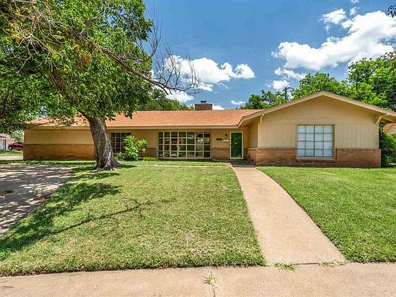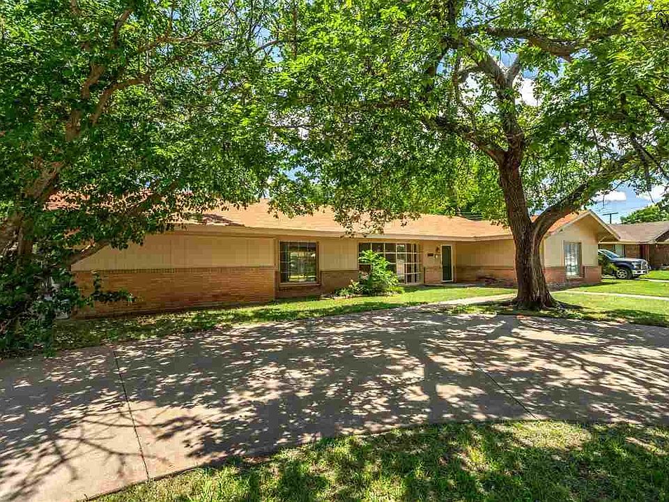Spacious family home on a desirable corner lot in Edgemere addition! This 3 bedroom, 2 bathroom, 2 car side entry garage home offers 2 large living areas, 2 dining areas, & a separate utility room. Kitchen features new flooring, abundance of cabinet & countertop space. All 3 bedrooms are generously sized with great closet space. Fresh interior & exterior paint, new carpet, & an updated Carrier HVAC with gas heating. Enjoy a large East facing covered patio, privacy fence, & storage building.