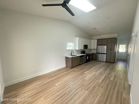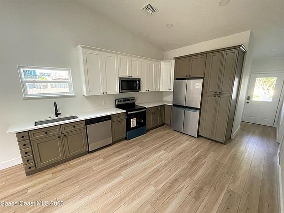 Beautiful completely renovated 2 bedrooms / 2 bathrooms unit in a quadplex located in Melbourne Beach. This unit has had many upgrades including new matching stainless steel appliances, new water heaters, walk-in shower, and new fixtures. Vaulted ceilings featured in the kitchen/living room area with recessed lighting. A huge screened in porch leads out to the private fenced in backyard, and perfect for entertaining. The property is a quick walk to the beach only one block! One car garage with extra space for parking in the driveway. Just a short drive to Cocoa Beach and Sebastian Inlet and 1.5 hour drive to Orlando.