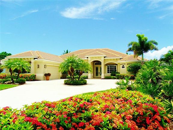 BURNT STORE MARINA Custom built 2006 estate home on over 1/2 acre with soaring views of pond & fairways! Meticulously maintained home looks brand new. Multiple custom built ins & decorative symmetry throughout. Custom handpainted murals in art niches & breakfast nook, granite counter tops with matching window ledges & accent pieces throughout, ceramic tile flooring in all areas except bedrooms & den, decorative lighting & ceilings. Tropical wood flooring in den compliments the custom designed desk & bookshelf. Fabulous chefs kitchen has multiple work areas, maple cabinetry, upgraded appliances, granite, breakfast bar,warming trays,veggie sink,accent lighting and backsplashes. A HUGE resort style lanai with pool, spa, gas fireplace, sun decks & multiple entertaining areas. Master BR/BAhas an en suite, two walk in closets, linen closet, double sinks, walk THROUGH shower, separate tub & custom lighting. Garage has 765 sqft with golf cart entry door & addtl workspace/storage...amazing! Make sure to read additional upgrades under each picture and see attached list of specific upgrades! Too much to list here, you have to come and see this fantastic home! Annual gate fee of is $515. Professionally landscaped and maintained, there is only one word to describe this house....GORGEOUS! Transferrable home warranty. Make an appointment today and prepare to be impressed! Manabloc plumbing,2 A/C systems,tile roof,irrigation system. Gated community with deep marina,restaurant, shops,golfing & bike/cart paths