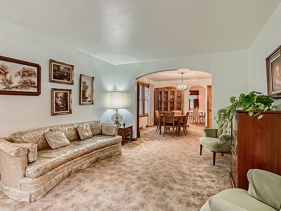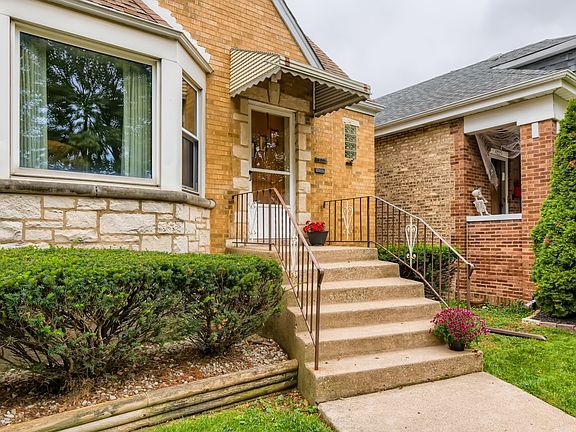 Wow! This charming block includes a variety of unique Chicago architecture styles, a lovely place to live with great schools and nearby parks. As you enter the cozy foyer thru the arched solid wood door you will be enveloped in the charm of this Chicago oasis. This is a 1 owner home. Hardwood floors (under carpet) in living room and dining room...also in both bedrooms on first floor Laundry shoot to basement laundry facility between 2 first floor bedrooms is a plus. Full bath has been updated with beautiful ceramic surround and a lovely vanity keeping the integrity and charm of this 50's brick bungalow. Lath and plaster showcase the arched doorways and room divides. Kitchen is ample with eat in space, hard surface counters and meticulously kept original metal cabinets. Built in dishwasher, for convenience during the update was added as was a microwave. Original electric oven and range still occupies the kitchen for its charm and nostalgia, (stove alone sold as is) Ceramic flooring in kitchen and bath provide easy cleaning and durability. This home was built to last and you feel the solid construction. An addition of a family room off the back of the home with windows for cross breeze is perfect for relaxing less formally. 2nd floor has a carpeted sitting room or living room, another bedroom and a sewing room which has pipes in place to be a kitchenette a wonderful option for an in-law arrangement. Open the door toward the back of the second floor to a very large walk- in attic space for storage or other choices. This space already has a cedar closet!! The 2nd floor has another 1/2 bath. Notice that the original plans for the home switched the stairway to the back to accommodate a simpler access to the 2nd floor what foresight!!! Downstairs you'll find full finished basement where laundry is located and out of the way this space expands entertaining and living options along with a full bath. A walkout basement adds convenience. New roof tear off has been completed 1/23 2022 on both home and garage and new gutters completed 2/02 2022 on both the home and garage. ( call LA for extra details) tuckpointing, furnace and air-conditioning and a brand new hot water heater in 2021. The electric is on circuit breakers. This home was filled with love by one family and shows in its care. Close to shopping and transportation and highways. Hurry, this gem won't last! This is a must see! Strong bones!