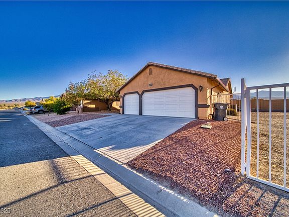 Site Built Home not in a designated flood zone. This Pride of Ownership home on a corner double lot with an oversized 8x20 Storage shed/Workshop. The yard is finished with desert landscaping and a few trees/shrubs with auto irrigation. A 3-car garage and a covered patio that faces east, with a block wall for privacy, make this home a perfect fit for family gatherings. The extra-large lot could be utilized for RV storage,hook-up, or even a workshop (if desired). Pristine and move-in ready 3b, 2b with ceiling fans. All newer HVAC System, Solar water heater, rain gutters, and heat-resistant exterior paint for stucco protection. There is a separate laundry room home is and on public water and sewer. Easy access to Highway 160 on a quarter acre and no HOA. This home is the package deal. Show and fall in Love. Come home to 5001 Ray Frank Blvd in rural Pahrump Nevada. Must see to appreciate!