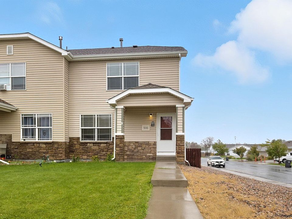 Corner lot with a 2 car garage! 5001 Sunny Ridge Lane is a 3 bedroom home located in East Cheyenne just one block from Dildine Elementary school and close to Cheyenne's Greenway walking path system, disc golf course, grocery stores and more. Large windows invite tons of natural light throughout this 2 story home complete with a primary en-suite bathroom and walk in closet! The garden level basement is perfect for an additional family room, play room, workshop or finish it to your liking with another bedroom. A deck off of the back provides an open and airy feel to this clean and affordable home. Take a look today!