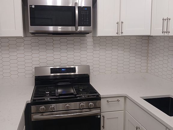 Brand-New Stainless Steel Appliances including stove, microwave, and refrigerator