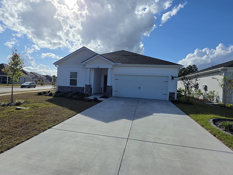 New, 3 Bedrooms, 2.5 Baths plus a flex (bonus) room, house in the Carolina Forest area. In the highly sought-after Subdivision of Clear Pond . A bright, open concept living space. Two secondary rooms with dual sinks bath. A versatile bonus room can serve as an office or an additional guest room. The primary suite boasts a walk-in tiled shower and impressive closet.