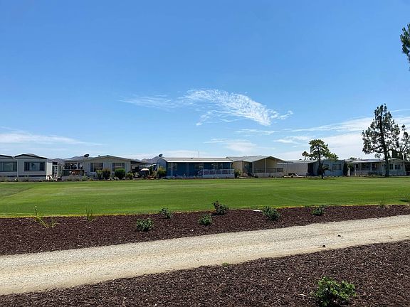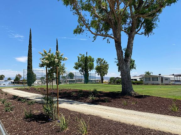 THE LAKES AT HEMET WEST 55 PLUS GOLF RESORT COMMUNITY This 2 bedroom 2 bath newly remodeled home is move in ready. Good sized living room has beautiful French doors opening out to a large concrete patio with a fantastic view of golf course. New flooring throughout, carport extensions, earthquake safety straps and reinforced, new skirting, exterior paint, new interior paint. Dining room has built in hutch and custom window shades. Kitchen comes with custom designed countertops, breakfast bar with small refrigerator designed to have a mini bar/coffee station , hall pantry, refurbished cabinets, new kitchen faucet, new stove and microwave. Refrigerator, mini refrigerator, stove and microwave all stay. Master bedroom has walk in closet with reglazed garden tub and new faucets in bathrooms. Newer 40 gallon water heater, updated plumbing with cpvc plumbing, new ceiling fans in the living room and master bedroom. Ramp, plug for golf cart. Large deck has golf course view as well. Gated and fenced area along side and front of house for pet.
