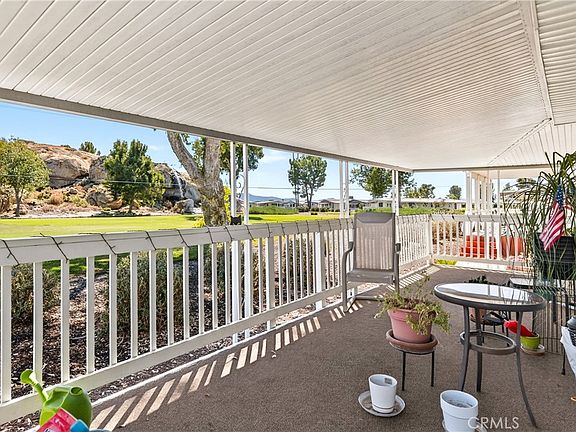 Welcome to The Lakes at Hemet West – Space #476, a beautifully located 2-bedroom, 2-bath home offering 1,120 sq. ft. of comfort and golf course living with picturesque views of the lakes, pool, and clubhouse. Enjoy the charming wrap-around porch, perfect for relaxing or entertaining, and a quaint kitchen with ample storage and included appliances—all in a move-in ready home. Located in a vibrant 55+ community with lakes, dog parks, walking trails, a clubhouse with a billiard room, and a full calendar of events including live music, food festivals, and more, this home offers resort-style living in a peaceful, scenic setting.
