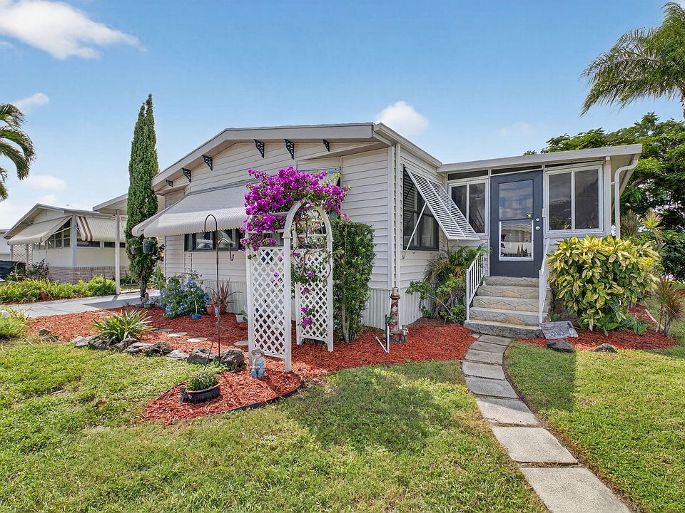 OPEN CONCEPT living in this unit with CUSTOM cabinets and QUARTZ countertops! NEWER Samsung appliances in the kitchen! Bathroom is handicap accessible with a roll in shower and new floors and vanity! BRAND NEW washer/dryer inside. Large Florida room is an extra living space that is not included in the square footage (with A/C!) Corner lot with attractive landscaping and a side patio. VAULTED ceilings in living area! Low HOA at only $250 per month includes: internet, water, sewer, trash removal, and 24 Hr manned gate. Jamaica Bay has 2 heated pools, a clubhouse, billiards, pickleball, golf chipping area, motorcycle and RV parking, on site maintenance and support staff. Pet friendly with 2 pets allowed up to 20 pounds each. CASH ONLY community with no rentals allow